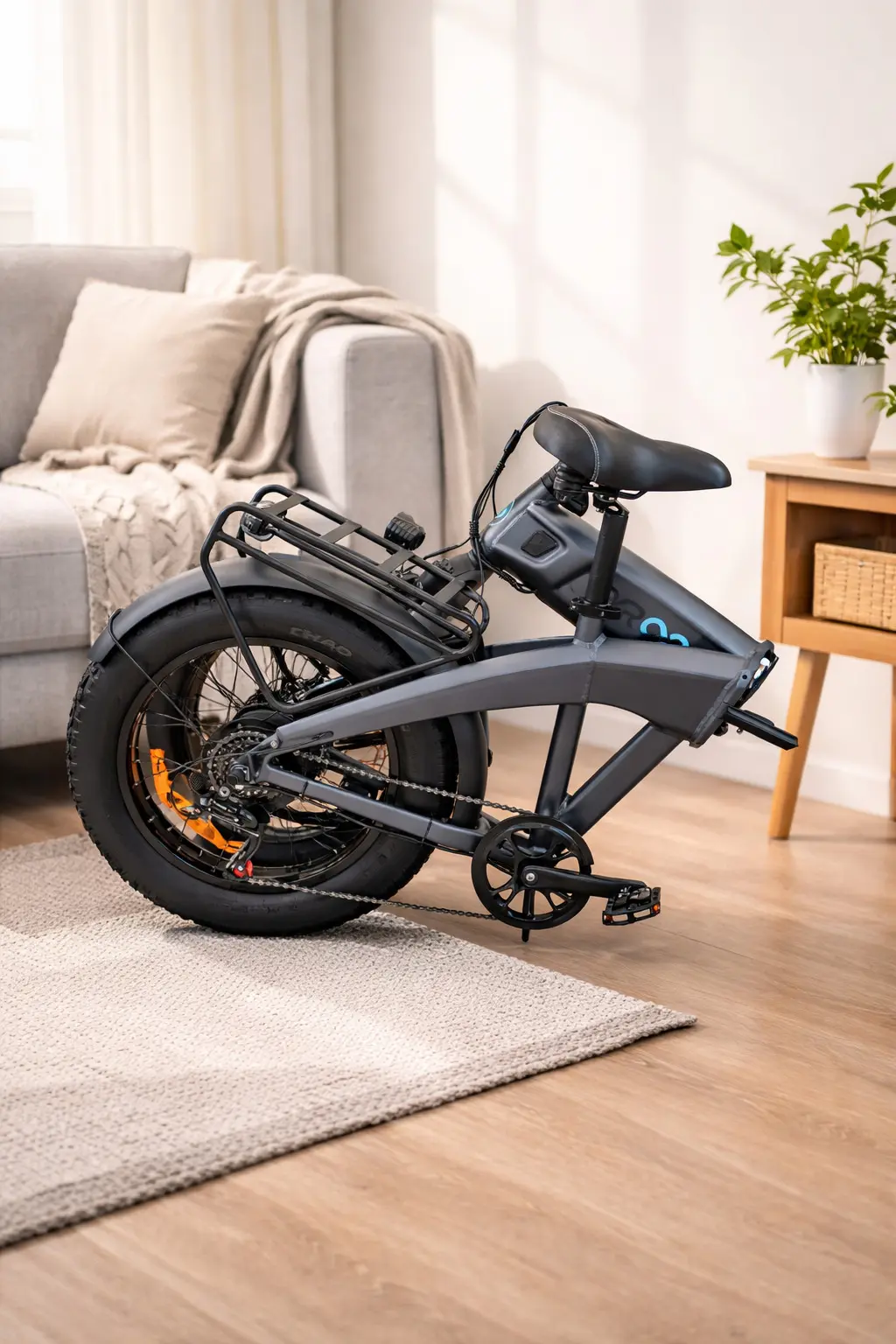 Su estructura plegable facilita guardarla en espacios pequeños o transportarla en el auto, mientras que sus ruedas anchas tipo fat bike de 20” ofrecen mayor estabilidad y seguridad en diferentes tipos de terreno.