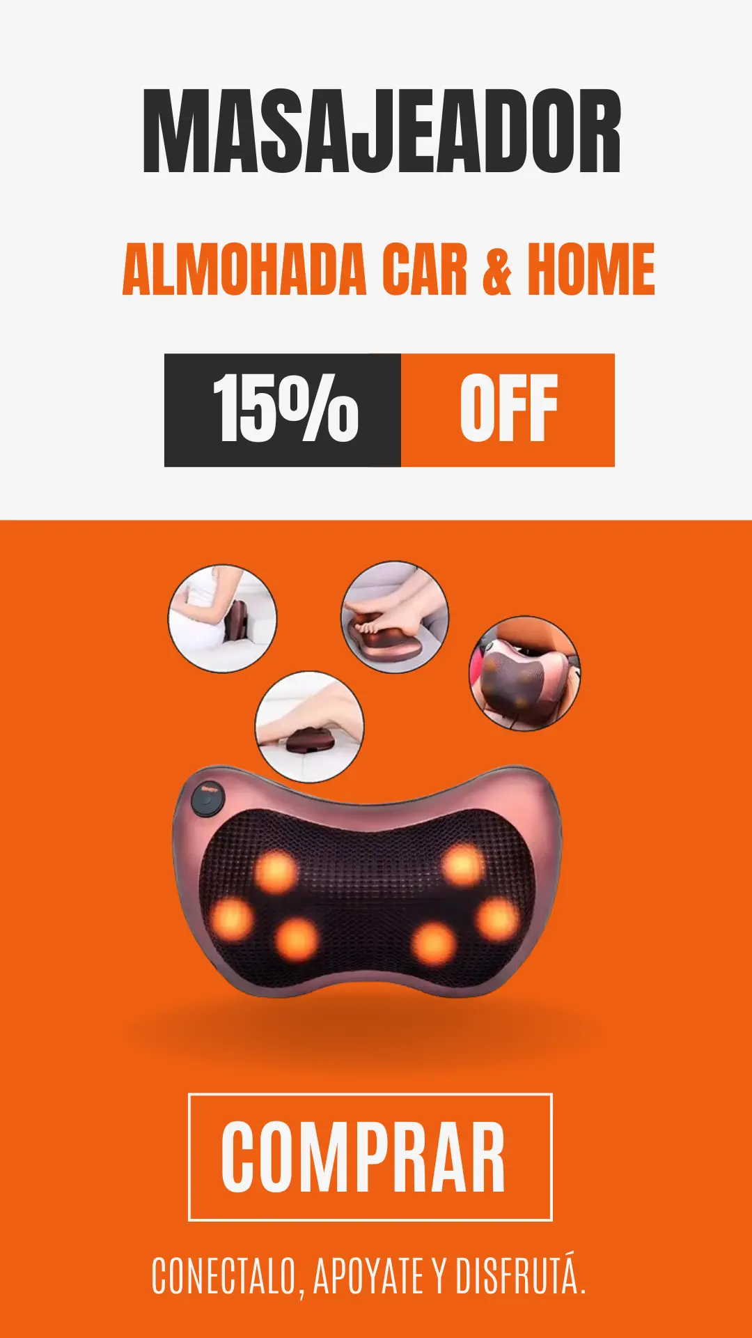 Apto para uso doméstico y automotriz, es un dispositivo práctico, liviano y fácil de transportar. Ideal para cuello, espalda, zona lumbar y piernas. Su funcionamiento simple permite utilizarlo en cualquier momento del día.