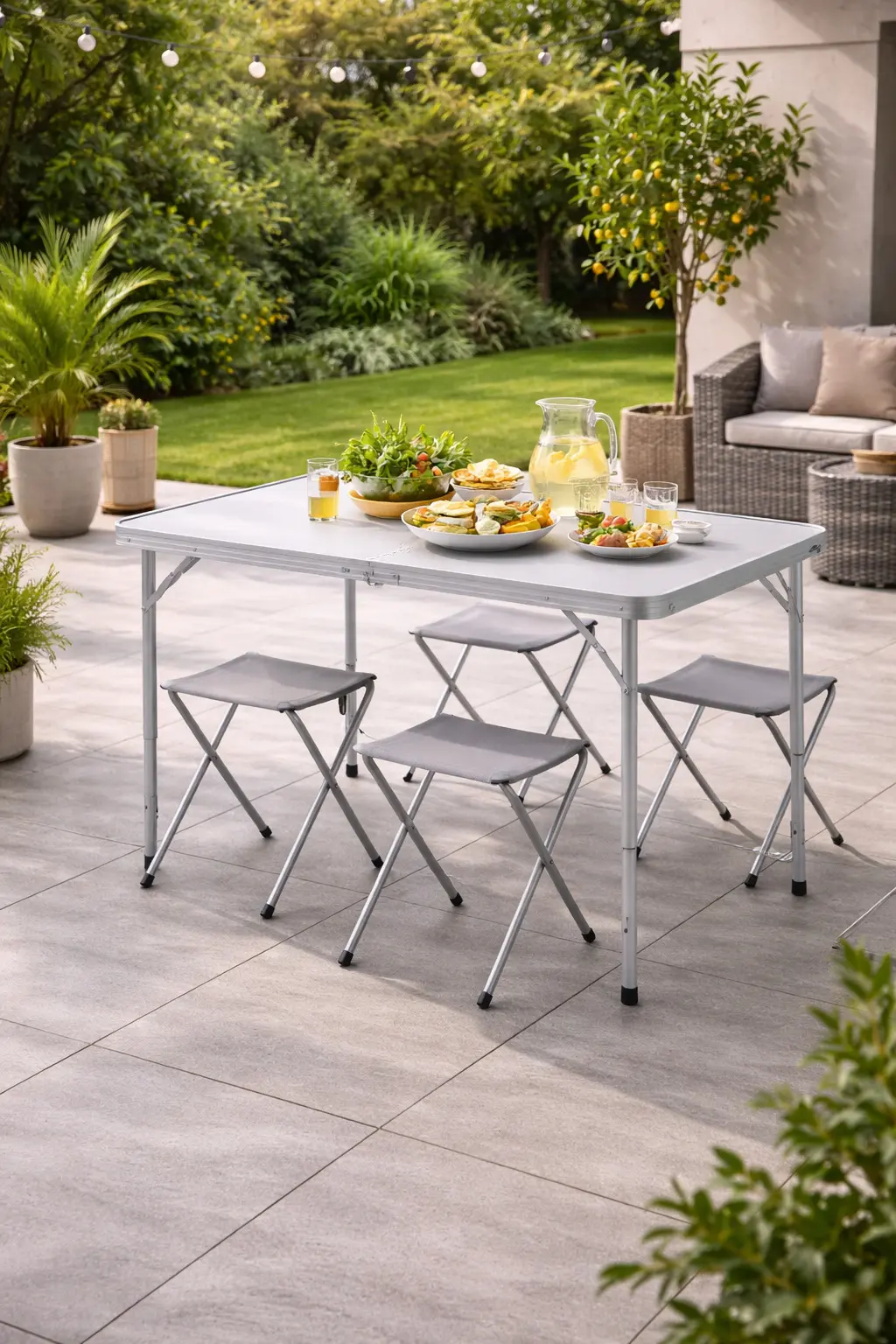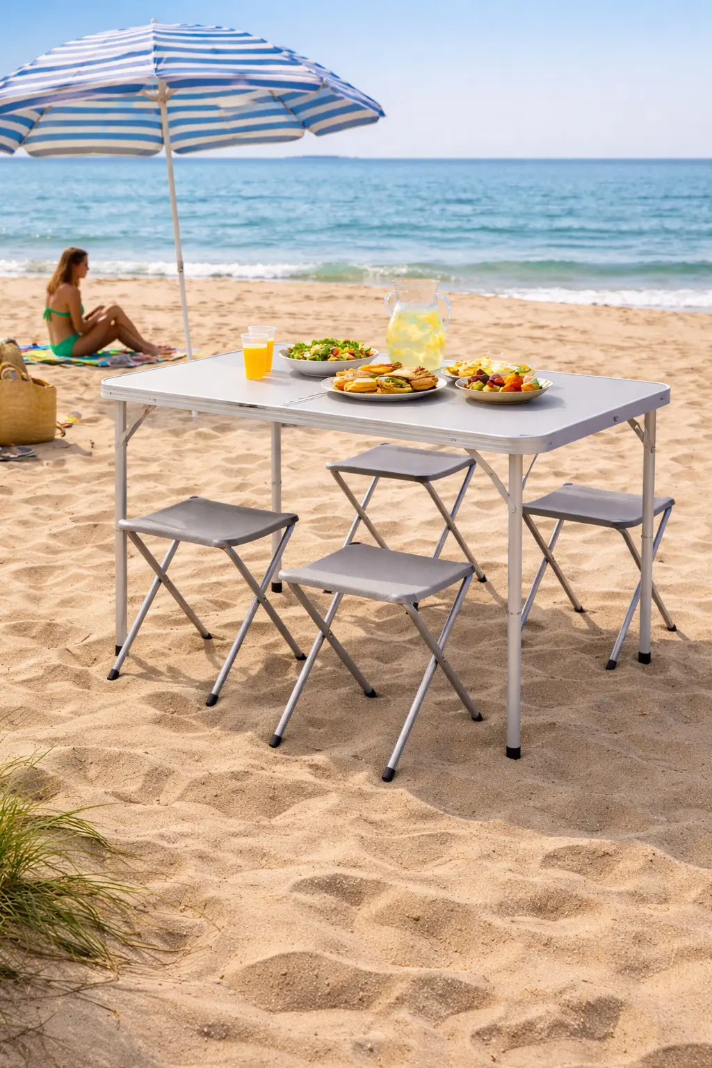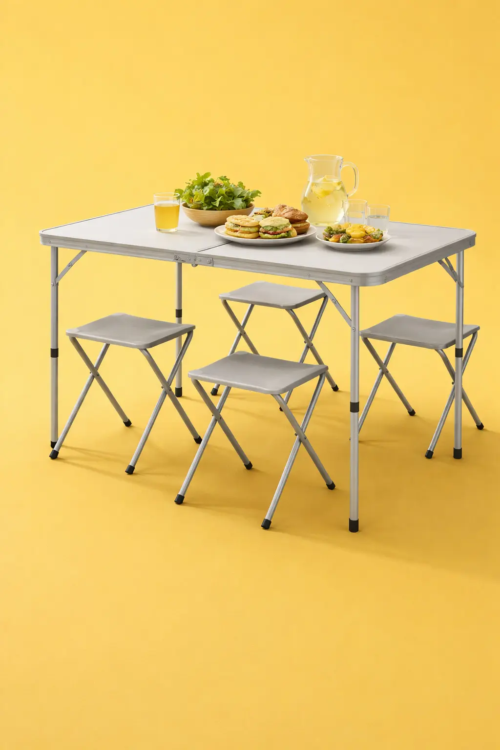 La mesa plegable con bancos es la opción ideal para quienes buscan comodidad, practicidad y ahorro de espacio en un solo producto. Perfecta para camping, playa, picnics, jardín o reuniones familiares, te permite armar un espacio cómodo para compartir en pocos segundos. Su diseño plegable hace que sea fácil de transportar y guardar, convirtiéndola en una solución práctica para llevar a donde quieras.