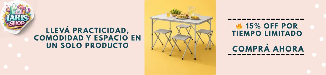 Es ideal para quienes buscan una solución práctica para comer, compartir, organizar reuniones o tener un espacio cómodo en cualquier lugar.