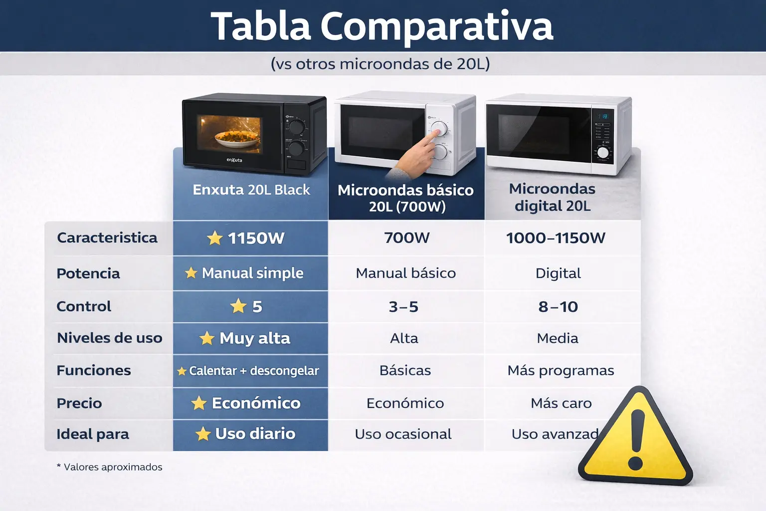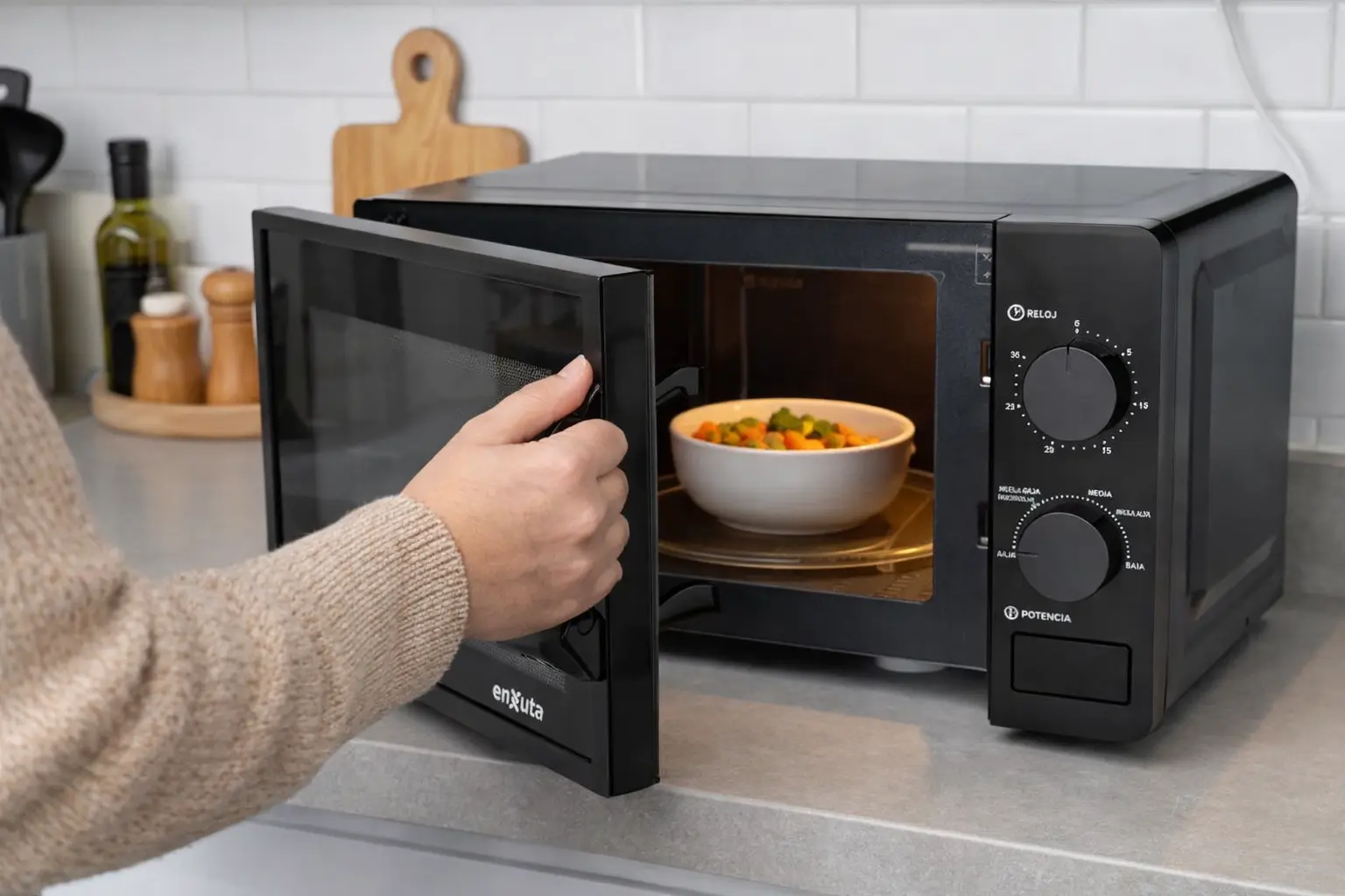 Equipamiento Completo: Incluye plato giratorio para asegurar que las ondas lleguen a todo el alimento por igual y un timer de precisión para un control total del tiempo.