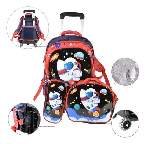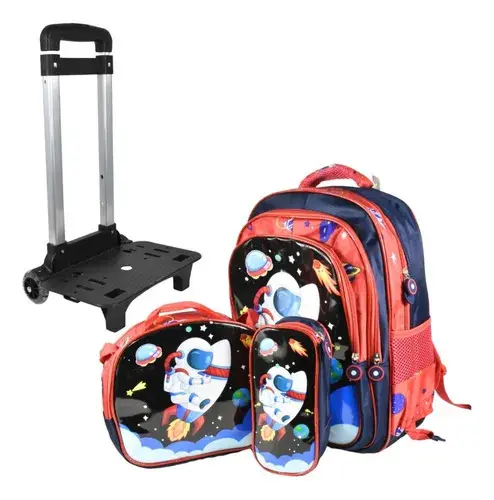 Este set completo incluye mochila con carrito desmontable, lonchera térmica y cartuchera, pensado para brindar comodidad, organización y practicidad.
